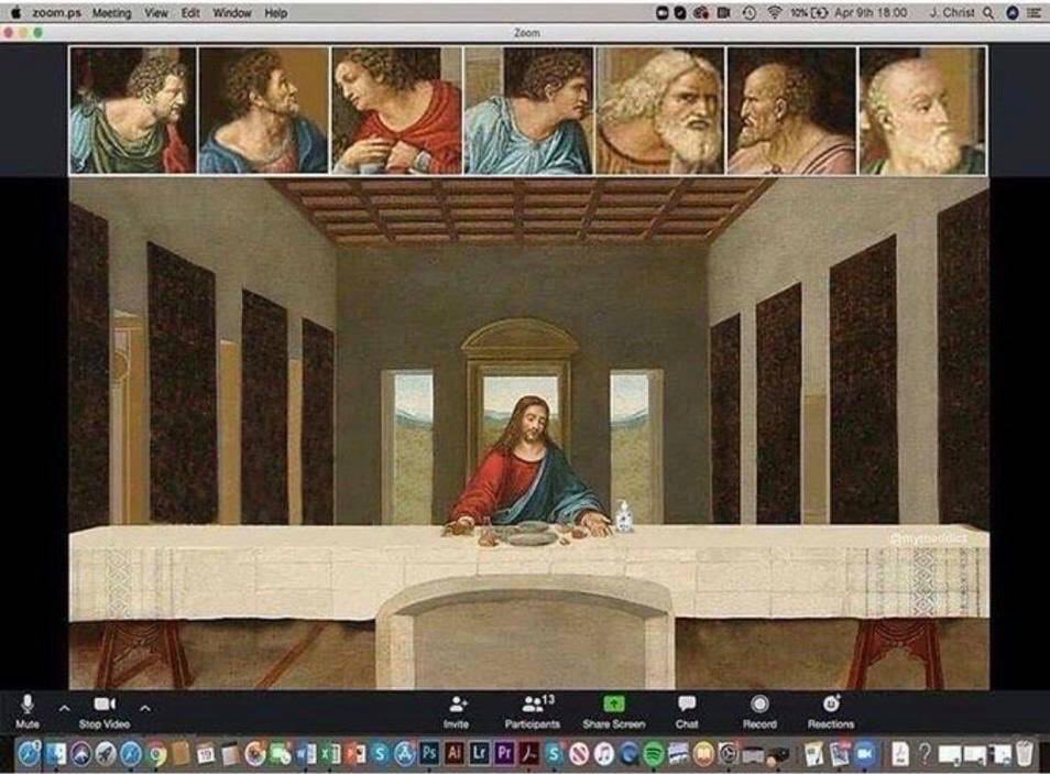 И картинка в духе времени. Поневоле вспомнишь анекдот про гвозди Шмуклера и в аналогичном стиле подумаешь — а вот если бы Zoom с коронавирусом случились бы 2 тысячи лет назад, Иуда не смог бы предать Иисуса.