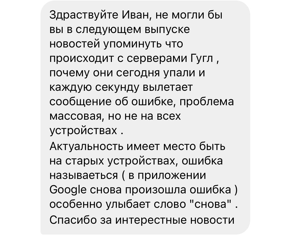У Google сегодня массовый сбой в работе сервисов. На многих Android-смартфонах выскакивает сообщение об ошибке. Подписчики уже начали писать в личку и задавать вопросы. В общем, если у вас есть проблемы - вы не одиноки.